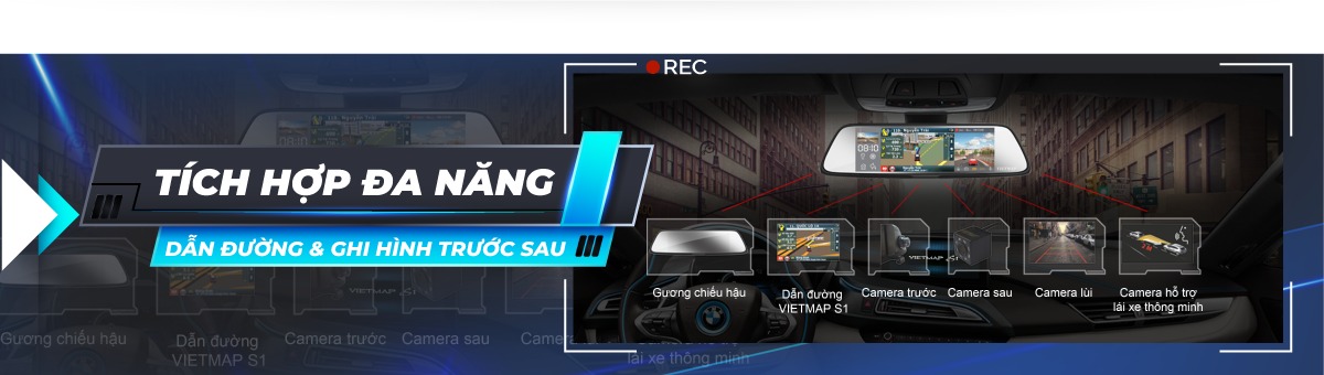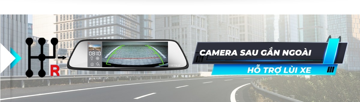 Thiết bị đa chức năng tích hợp gương chiếu hậu cho phép vừa dẫn đường vừa làm camera hành trình thông minh ghi hình cùng lúc trước sau. Camera sau đồng thời hỗ trợ camera lùi, tự động chuyển camera lùi khi trả về số R.