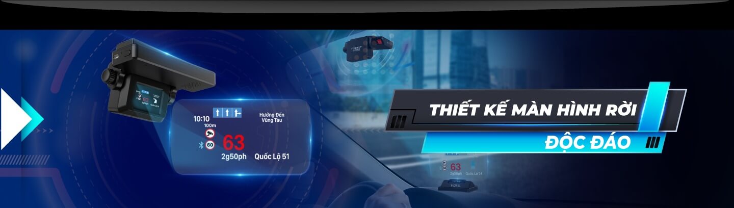 Dẫn đầu về tính năng và công nghệ, màn hình HUD H2AS thế hệ mới của VIETMAP với thiết kế màn hình rời độc đáo đồng thời kết hợp ứng dụng dẫn đường trực tuyến VIETMAP Live với dữ liệu cảnh báo giao thông trực tuyến hữu ích như: cảnh báo camera phạt nguội, theo dõi tốc độ, vượt đèn đỏ, trạm thu phí với giá vé của từng trạm,… giúp người lái chủ động hơn trong các tình huống giao thông.