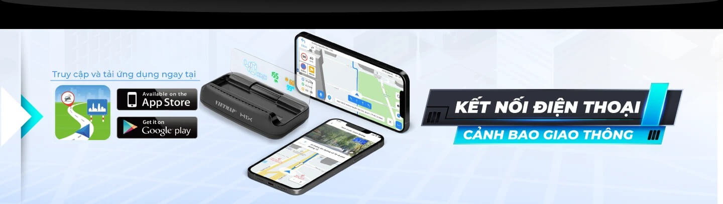 Màn hình HUD VIET MAP H1X với ứng dụng VIETMAP LIVE tích hợp dữ liệu cảnh báo thông tin giao thông chi tiết toàn quốc: